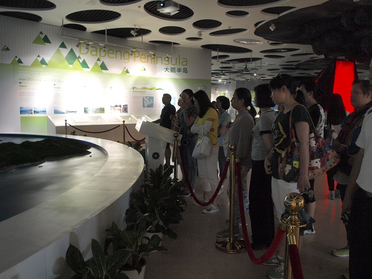 在国家级的深圳地质公园博物馆,跟着导游的讲解,大家依次参观了各展厅,饶有兴趣地看到了日常听说或陌生的各种地质标本,了解了大鹏半岛地质地貌的成因等科普知识。原来地质非常稳定的深圳南澳也曾经是由古火山喷发形成的。