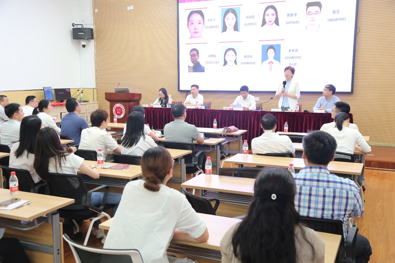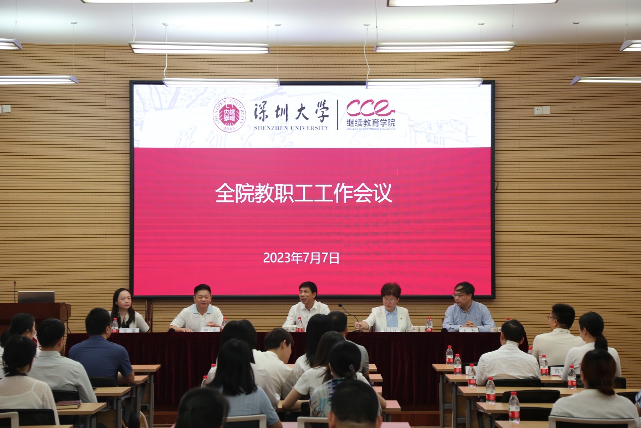 7月7日上午,继续教育学院2023年春季学期全院教师大会在学院一楼聚美堂举行。院长李伟文、党总支书记陈志行、副院长刘子华、副院长王楠、副院长胡蓉及全体教职工参加会议,会议由陈志行书记主持。