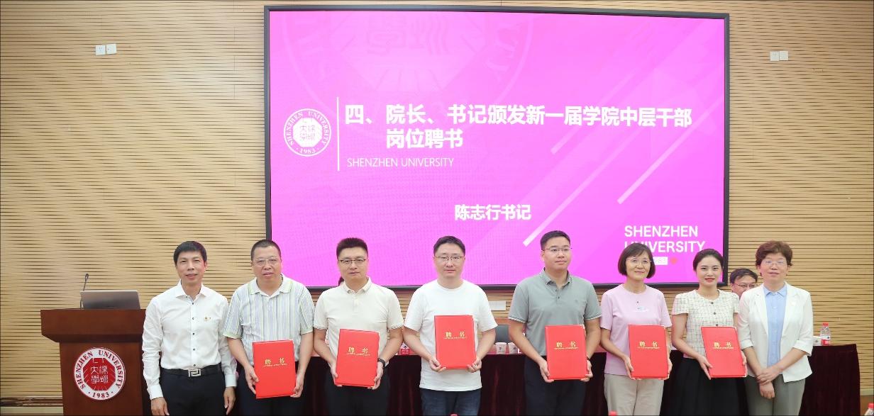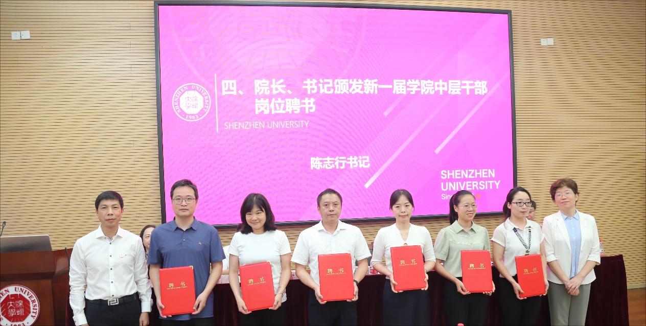 会上,陈志行书记汇报学院中层届满考核情况并宣布新一届学院中层聘任决定。接着,李伟文院长、陈志行书记为新一届学院中层干部颁发岗位聘书。