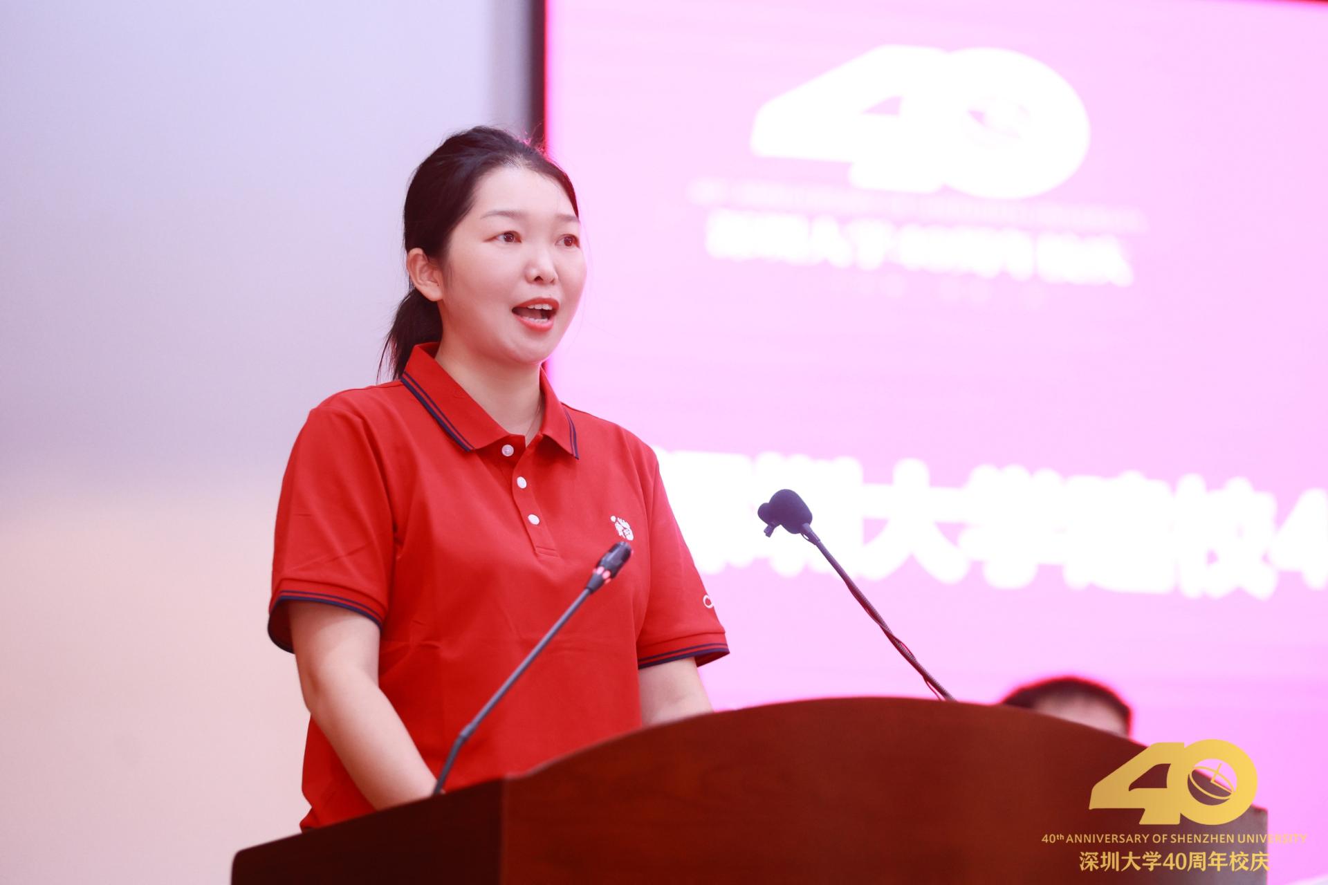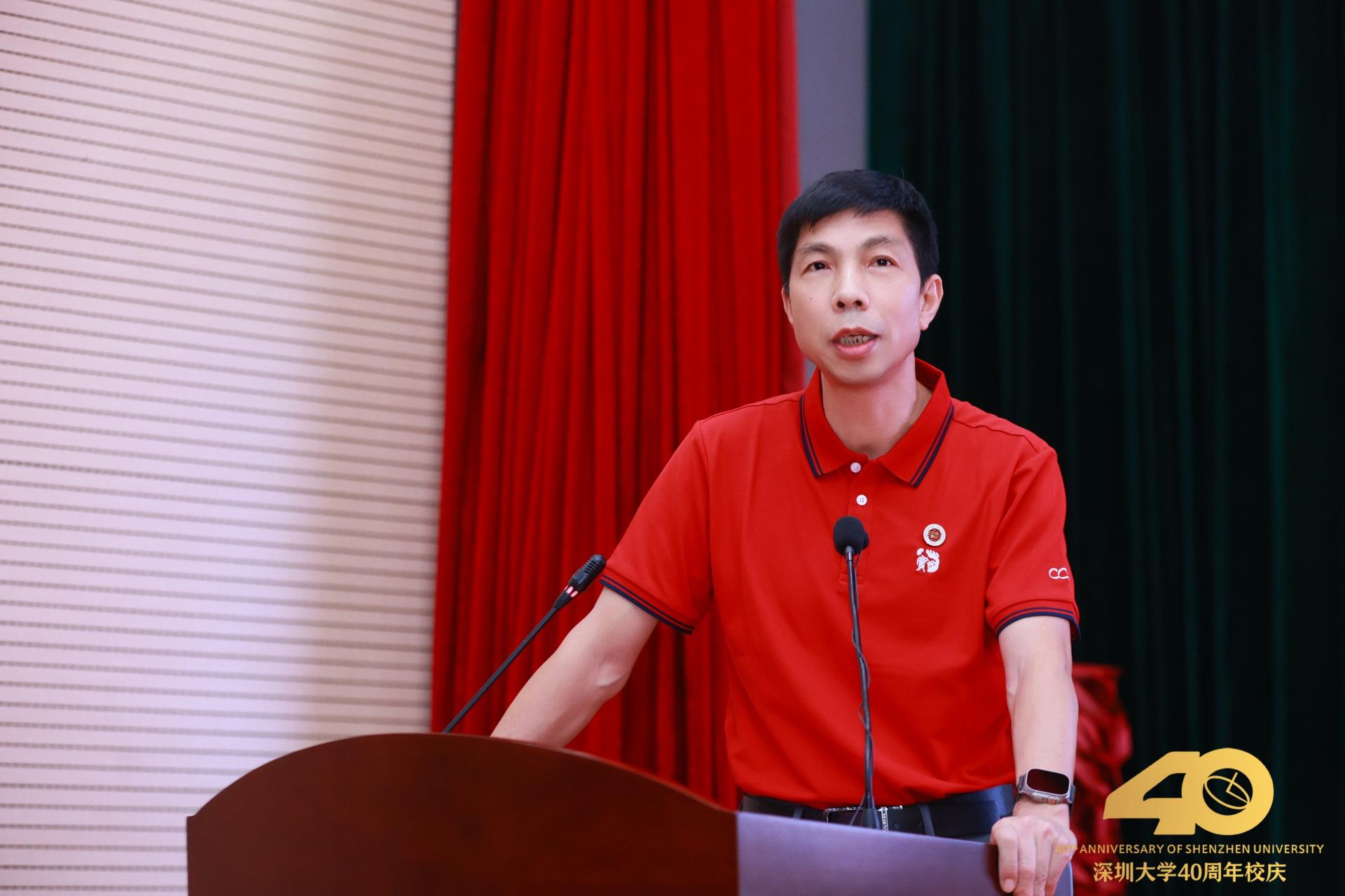 捐赠仪式环节后,深圳大学汪永成副校长在庆祝活动作讲话。他首先简要介绍了深圳大学的建校历程、办学特色、科学研究、发展成就等情况;其次对继续教育学院办学40年在服务社会、培养人才等方面做出的贡献给予了充分肯定;之后,对学院历任领导、广大校友们分别对深圳大学建设与发展付出的努力和给予的关心和支持表示由衷感谢;高质量办学是继续教育学院发展的重要保证,希望学院在新的发展征程上,不断创新、不断进取,取得更辉煌的成绩。