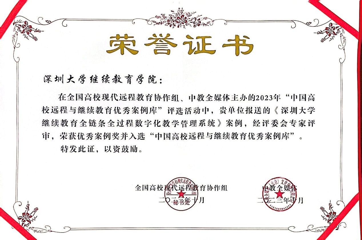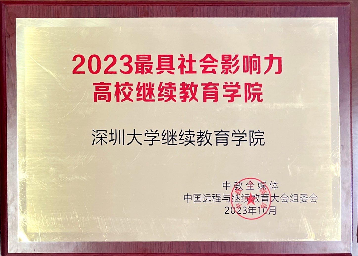 深圳大学继续教育学院已连续七年荣获“中国最具社会影响力高校网络与继续教育学院”称号,充分体现了业内对我院在推动中国远程与继续教育事业发展中发挥的榜样作用和社会影响力的肯定。