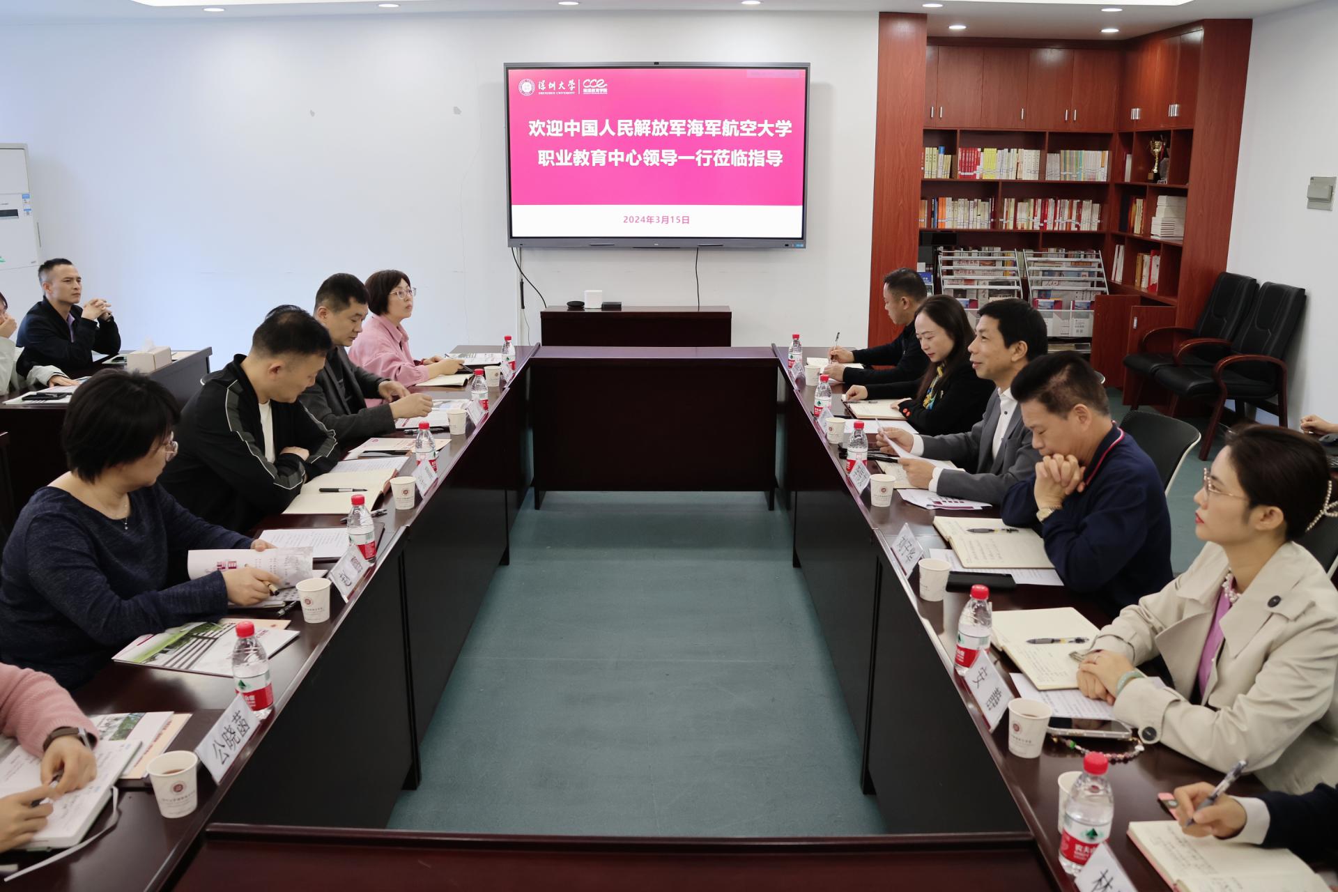 3月15日下午,中国人民解放军海军航空大学职业教育中心主任张翼上校、讲师丁彪上校等一行8人莅临学院调研交流,深圳大学继续教育学院院长李伟文、副院长刘子华、王楠、胡蓉及相关部门负责人等热情接待。双方就人才培养模式、学习管理模式、成长发展路径设计等多个方面进行了深入的座谈交流。