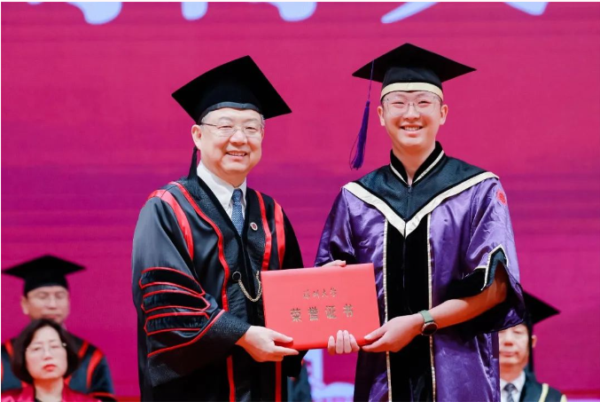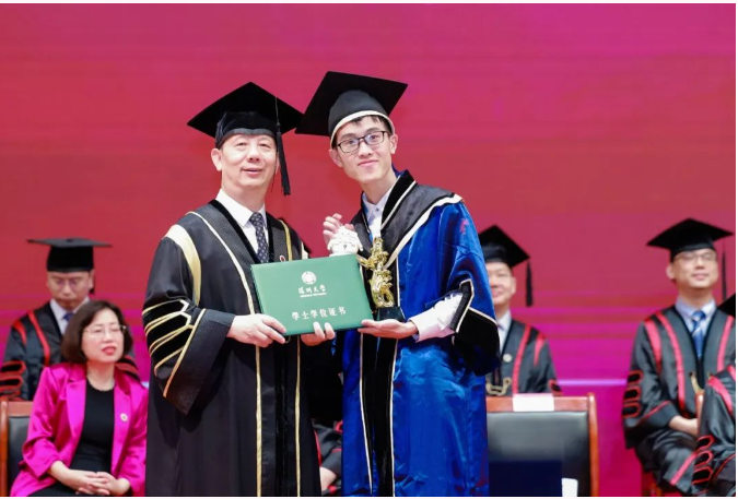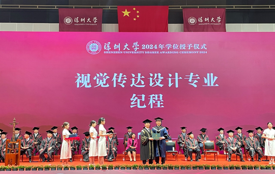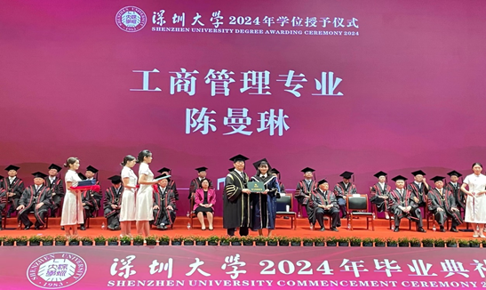在学位授予环节,党委书记李清泉院士亲自为优秀毕业生代表颁发荣誉证书,表彰他们在校期间的卓越表现。校长毛军发院士逐一为获得学士、硕士、博士学位及荣誉学位的毕业生颁发学位证书。今年上半年,深圳大学授予高等学历继续教育本科毕业生学士学位2485人。我院优秀毕业生代表陈曼琳、纪程上台领取证书。