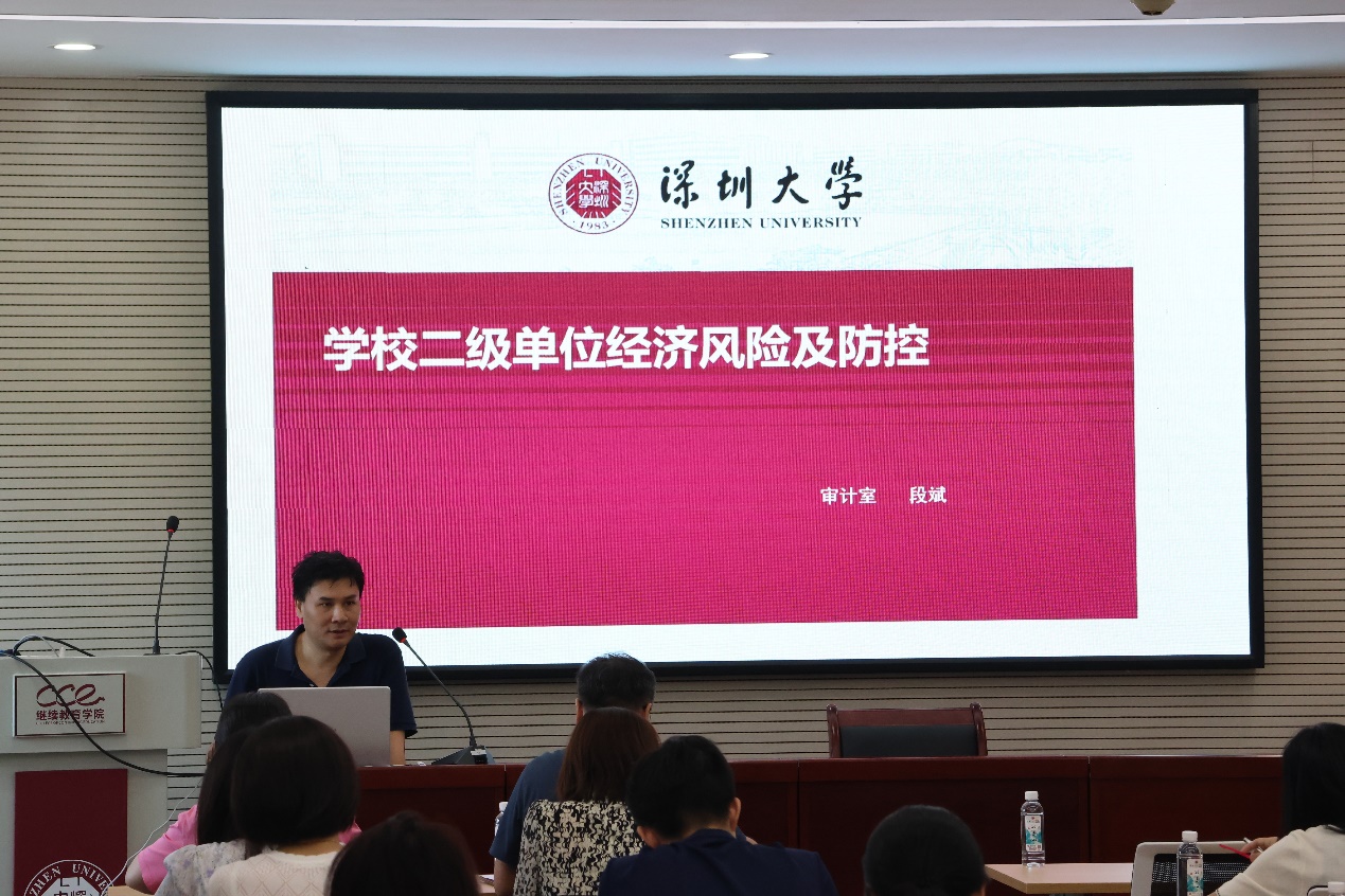 段斌主任以《学校二级单位经济风险及防控》为题作合规建设专题辅导,先后从风险与内部控制、二级单位主要经济风险、风险防控建议三个方面进行深入解读。他通过具体案例,指出内部控制在风险管理中的重要作用,并强调加强内外部审计和监督的重要性,建议从制度建设、流程优化、人员培训等多方面增强全体成员的合规意识,以确保学院经济活动的合规性和透明度。讲座条理清晰、内容详实,引起了与会人员的深刻共鸣。