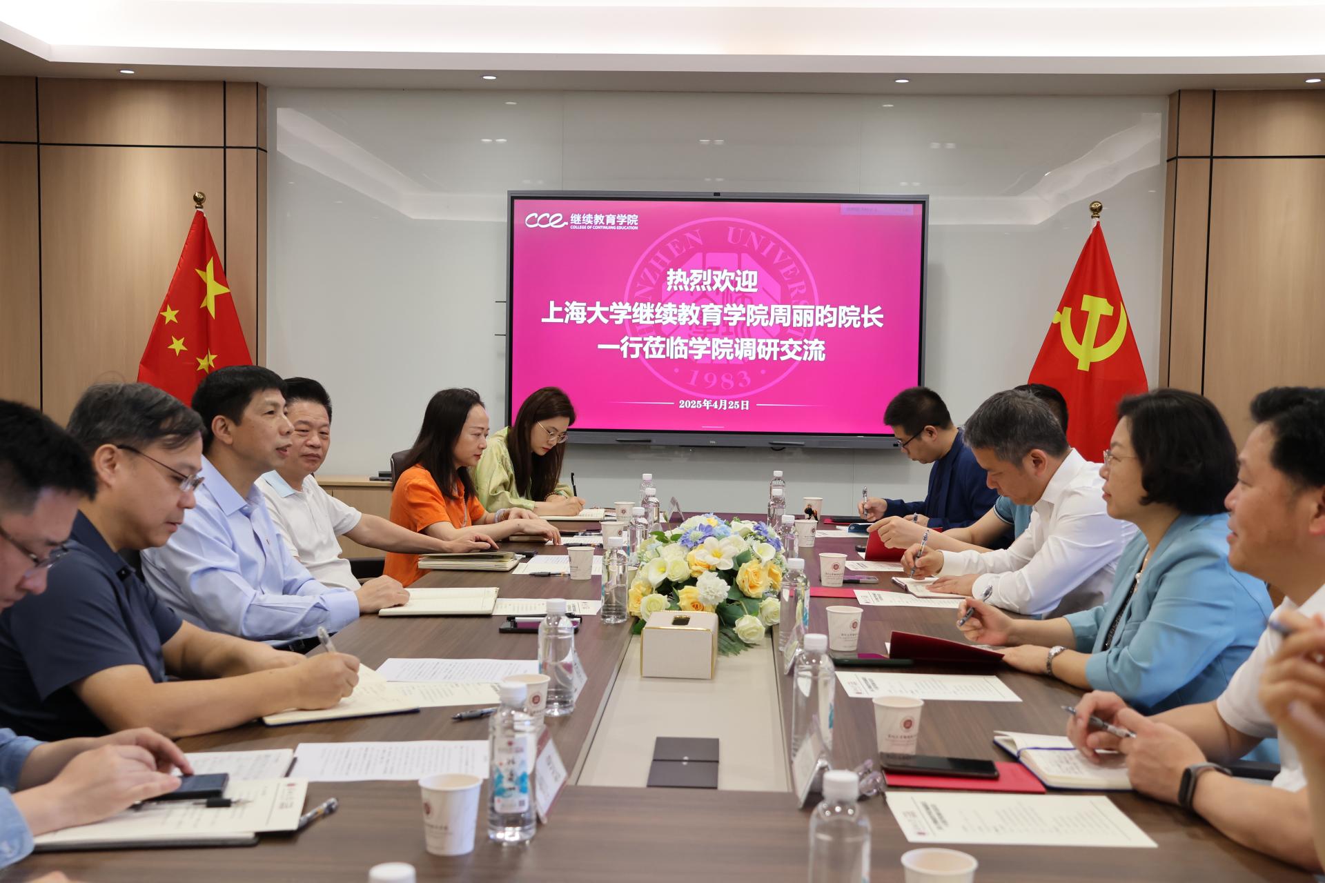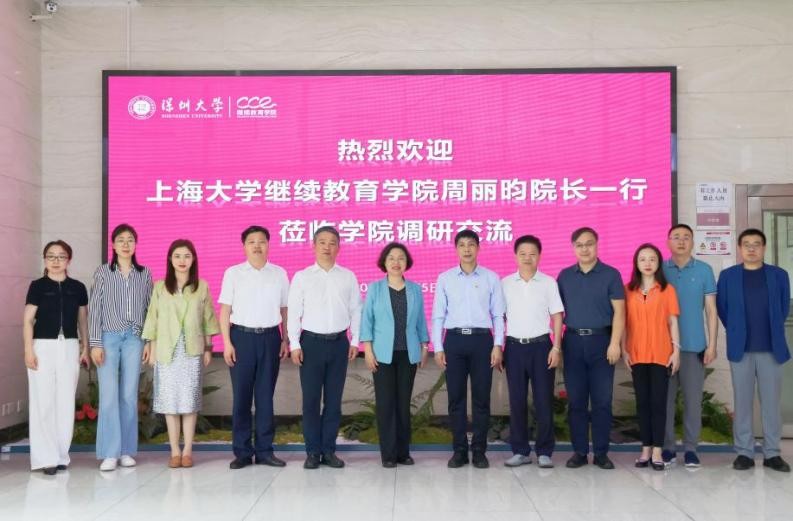 4月25日,上海大学继续教育学院院长周丽昀一行6人到访深圳大学继续教育学院开展专题调研,双方围绕继续教育高质量发展、数智化转型及国际化办学等核心议题进行深度交流。深圳大学继续教育学院院长李伟文、副院长刘子华、副院长王楠、副院长胡蓉及相关部门负责人等热情接待,双方在学院会议室举行了交流座谈会。