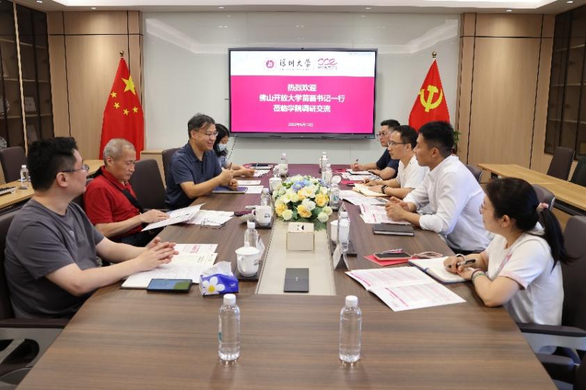 6月12日,佛山开放大学党委书记苗磊一行莅临深圳大学继续教育学院调研交流。深圳大学继续教育学院党总支书记张革华、副院长王楠及相关部门负责人等出席座谈,双方围绕新时代继续教育高质量发展展开深入探讨。