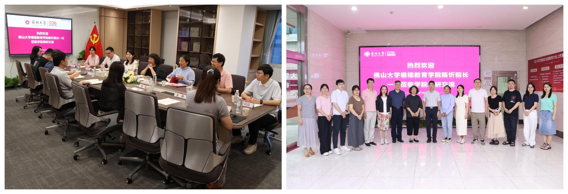 7月10日,佛山大学继续教育学院院长陈忻一行7人到访深圳大学继续教育学院调研交流,我院院长李伟文、副院长王楠、胡蓉及相关部门负责人等热情接待,双方在学院会议室举行了交流座谈会。