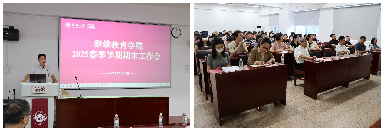 7月15日,继续教育学院在学院会议室召开2025春季学期期末工作会,全院教职工参加会议,会议由学院党总支书记张革华主持。会议全面总结了学院上半年工作成效,明确了暑期及下半年重点工作任务,为学院高质量发展指明了方向。
