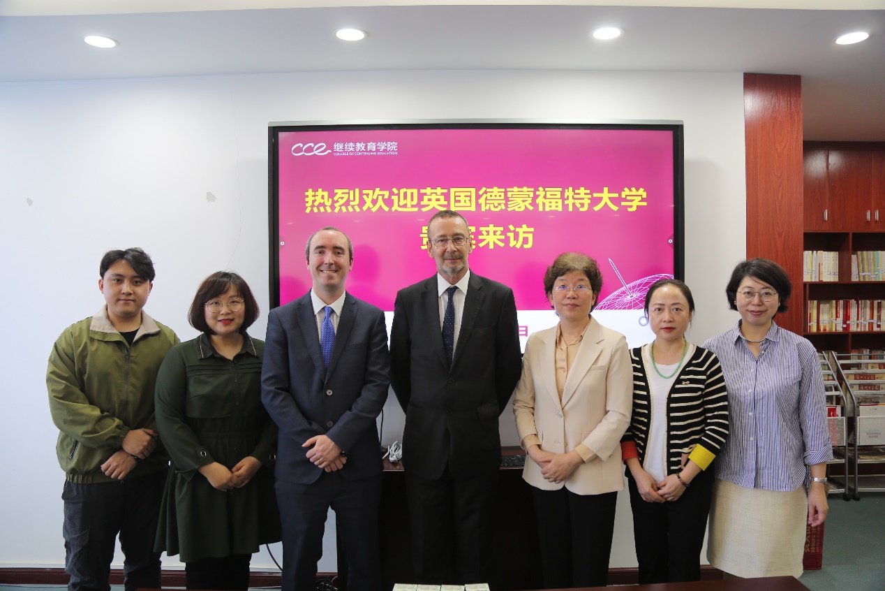 4月26日上午,我校2+2国际本科项目合作院校英国德蒙福特大学商学院副院长Ian Thomas一行4人,代表德蒙福特大学到访学院。深圳大学继续教育学院党总支书记陈志行、副院长胡蓉、2+2出国留学项目主管蒋涛一同参加了会见。
