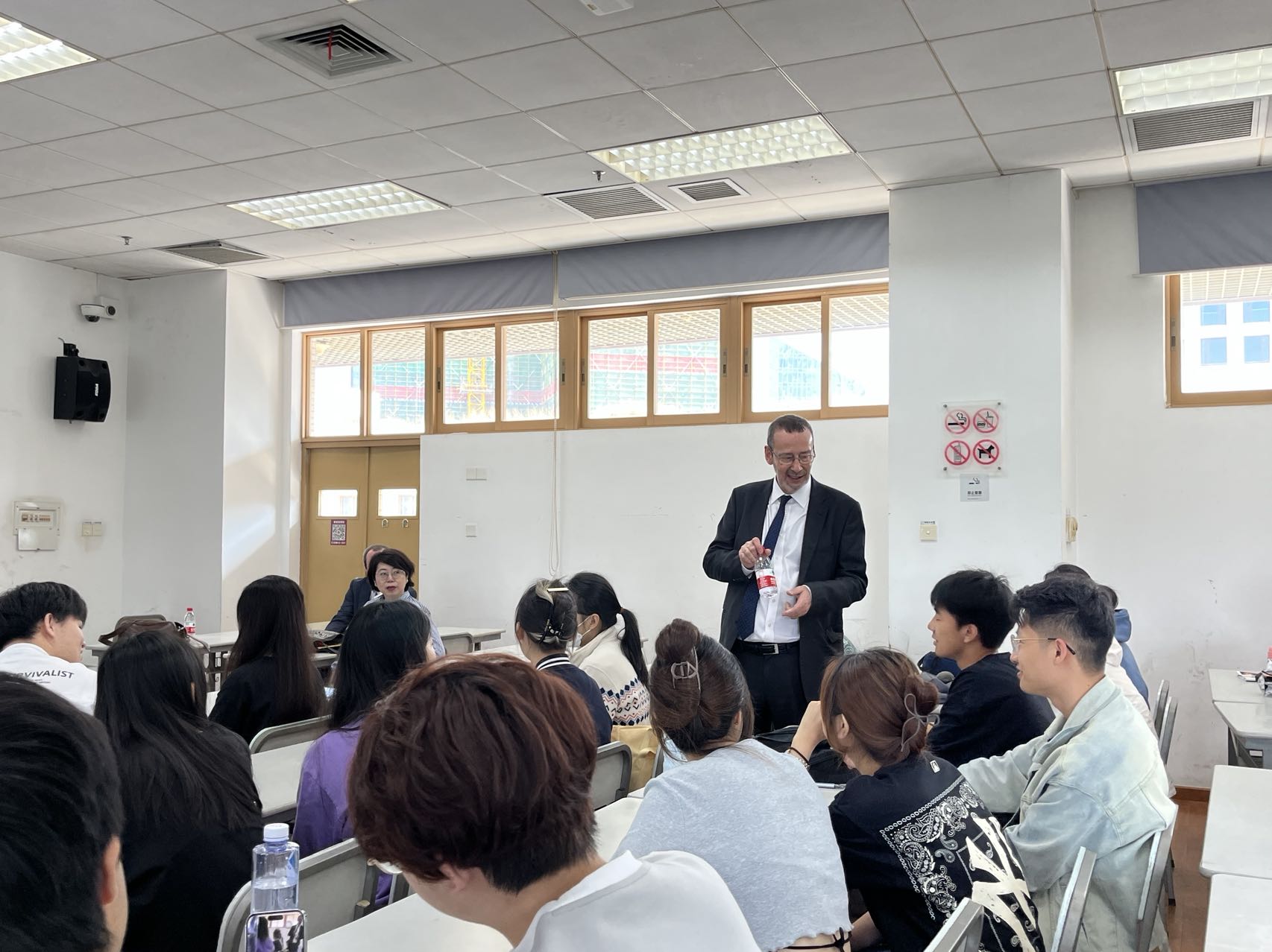 在正式座谈前,英国德蒙福特大学代表们与我院部分2+2国际本科项目学生进行了交流。在交流过程中,学生们踊跃提问,对即将开启的英国德蒙福特大学学习之旅充满畅想和期待。校方代表们对学习计划、课程设置、学业发展前景等问题做出了详细的回答,高度赞誉了我院学生的综合素质,对他们积极向上的学习态度感到十分满意。