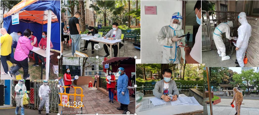 在这场看不见硝烟的战斗中,深圳大学继续教育学院党总支响应上级号召,迅速宣传鼓动,党员积极反应,党总支不少党员群众挺身而出,积极投身疫情防控工作,以志愿者的身份主动加入到这场战“疫”中,为疫情防控贡献自己的力量。黄嘉祺、沈家敏、郭文东积极响应学校号召,第一时间主动报名学校选派参加疫情防控。还有党员自发就地参与社区抗疫工作: