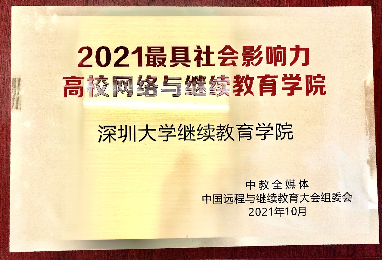 近日,2021中国远程与继续教育大会于北京落下帷幕。大会由全国高校现代远程教育协作组、中国高等教育学会继续教育分会、全国高等学校教育技术协作委员会共同指导,中教全媒体主办。大会上举行了颁奖典礼,我院荣获 “2021中国最具社会影响力院校” 称号,案例《深圳大学提高高等学历教育质量的路径探索》荣获优秀案例奖并入选“中国高校远程与继续教育优秀案例库”优秀案例名单。