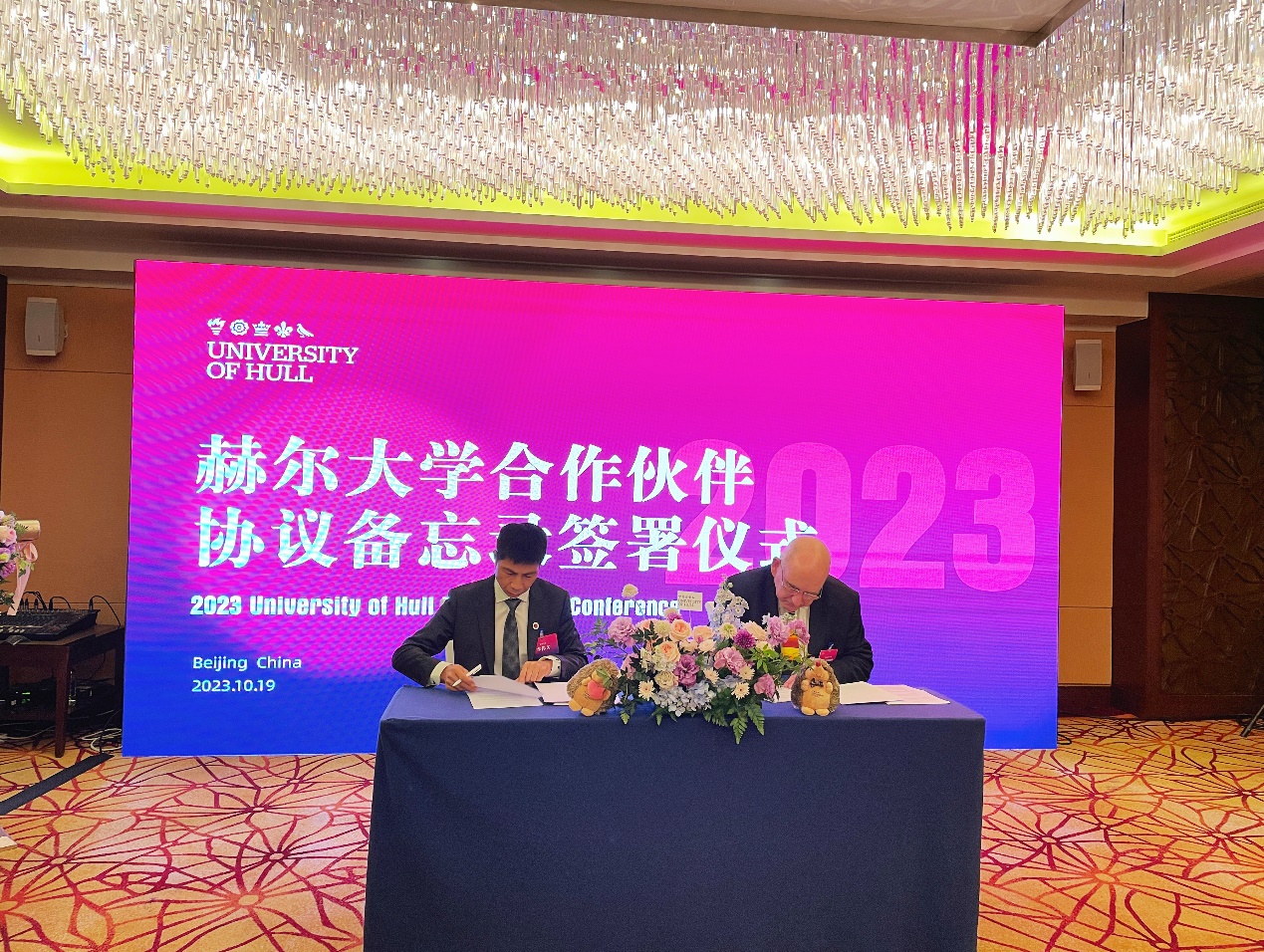 会上,赫尔大学商业、法律和政治学院副院长Mrs. Alison Price-Moir、赫尔大学艺术学院负责人Professor Andrew King先后就学院办学特色、成果等作了全面详细的分享;李伟文院长代表学院与Philip Gilmartin副校长代表赫尔大学,在会上签署了合作协议备忘录。赫尔大学副校长Professor Philip Gilmartin,全球招生负责人Mr. Dominic Greenfield等领导以及上海外国语大学、北京航空航天大学、北京理工大学、华南师范大学等合作伙伴代表参加了会议。