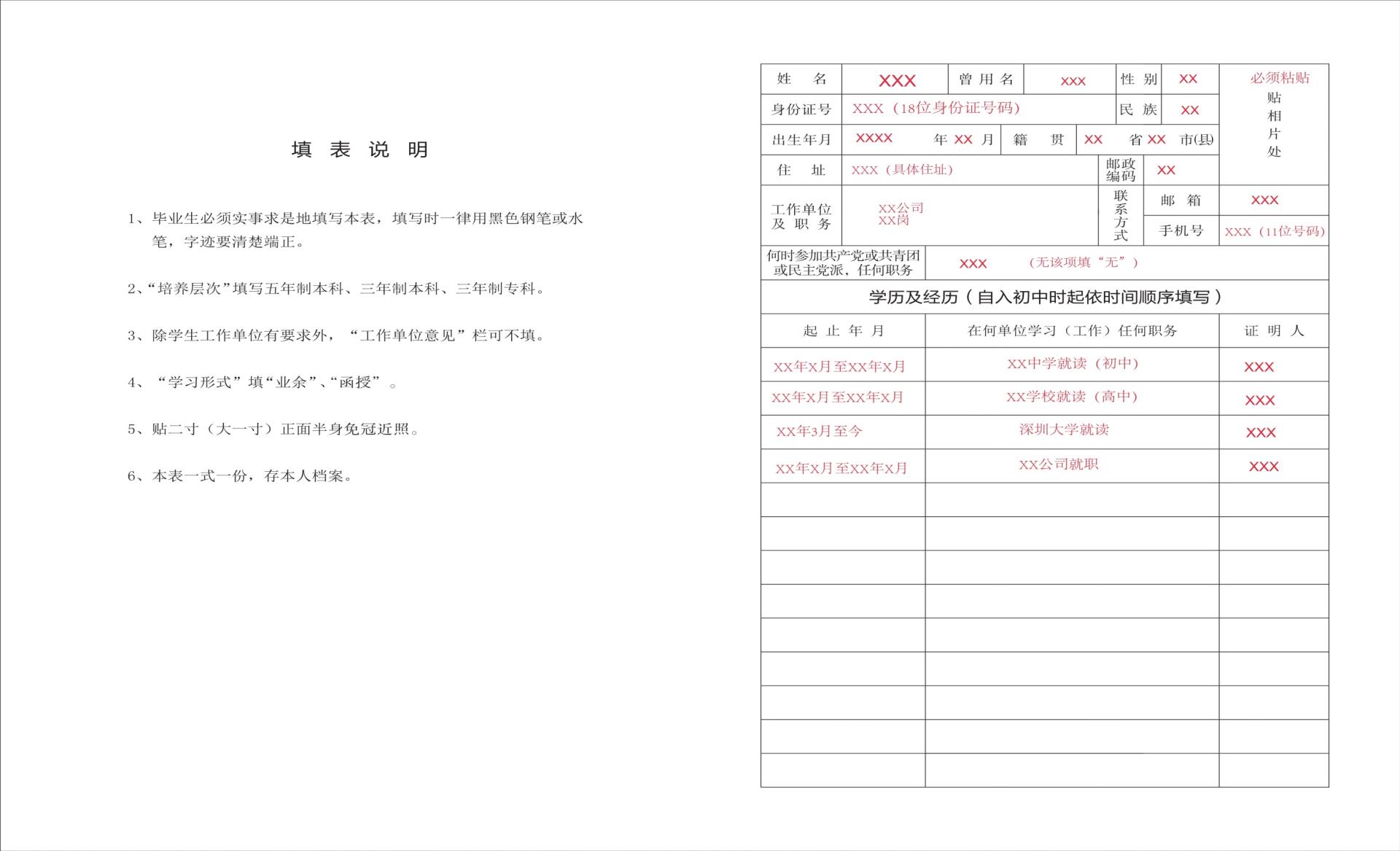 (1)表格必须学生本人如实填写,一律使用黑色签字笔,字迹要求清楚端正,签字笔自带。