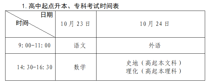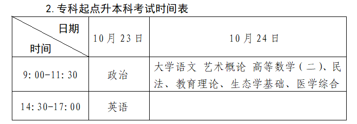 以上高中起点本、专科的数学考试科目不分文理科,专升本数学科考试科目为高等数学(二)。专科起点升本科的招生专业与专业基础课考试科目对应详见《专科起点升本科招生专业与统一考试科目对照表》(附件10)。