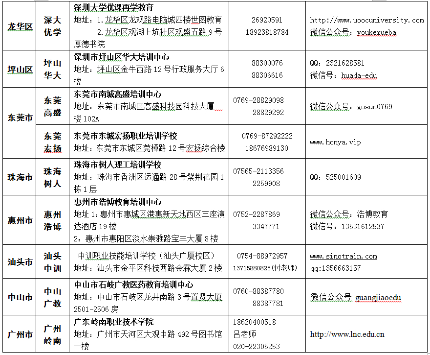| 惠州浩博 | 汕头中训 | 广州岭南 | 中山 广教