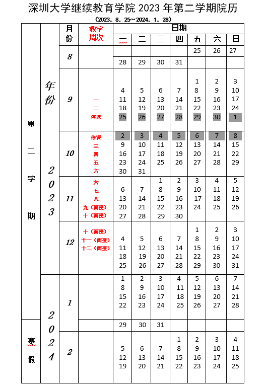 注:以上安排如有变动,以学院正式通知为准。请同学们经常登录深圳大学继续教育学院主页:http://cce.szu.edu.cn , 获取学院各类最新信息。