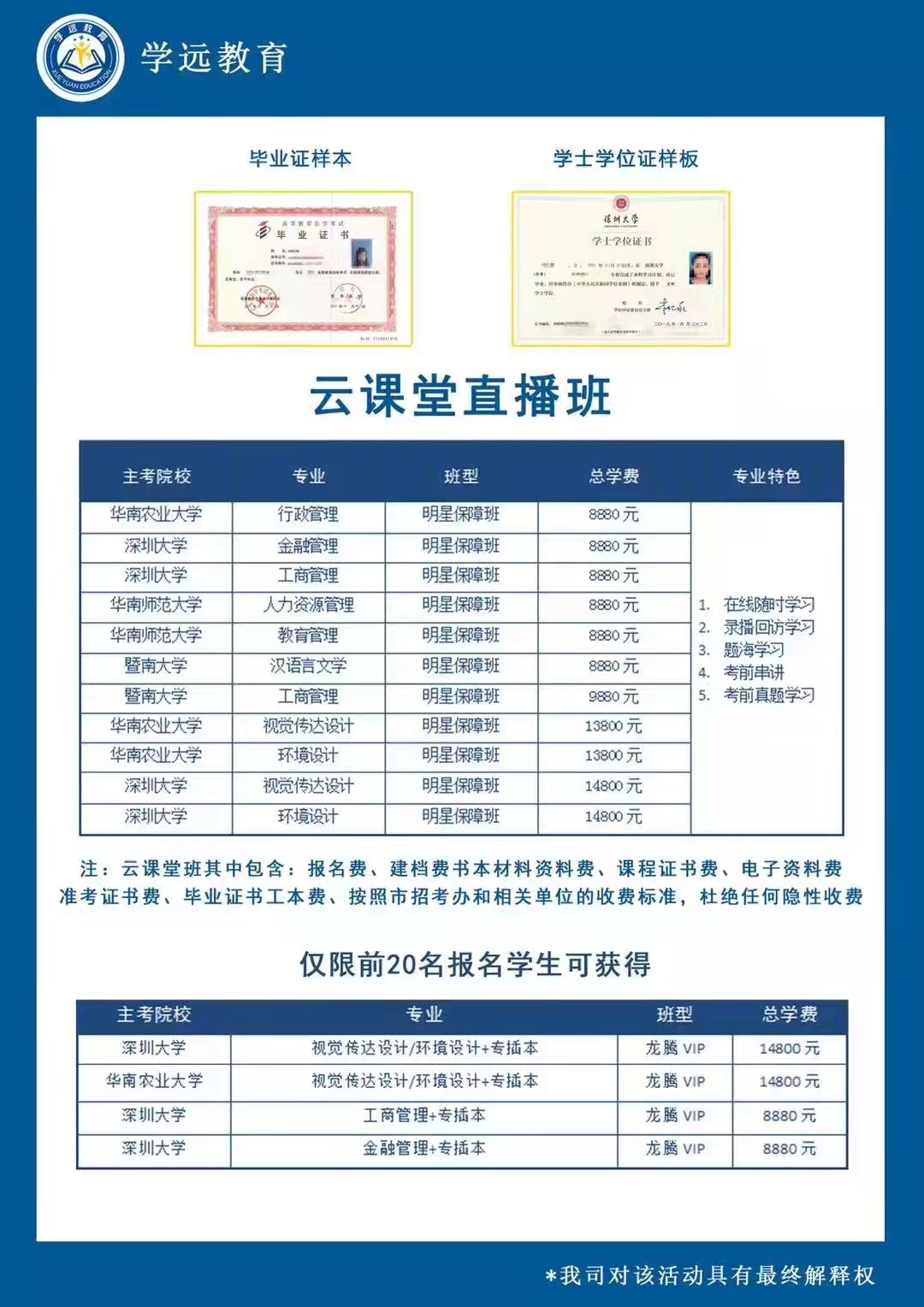 近期,我院发现,有机构以深圳大学名义在微信等网络平台进行自学考试招生宣传。经查,该招生宣传未经授权使用深圳大学名称、名义,涉嫌虚假宣传和不正当竞争,侵犯我校权益,误导考生。该信息发布者指向“学远教育”。该公司与深圳大学及深圳大学继续教育学院无任何关联。