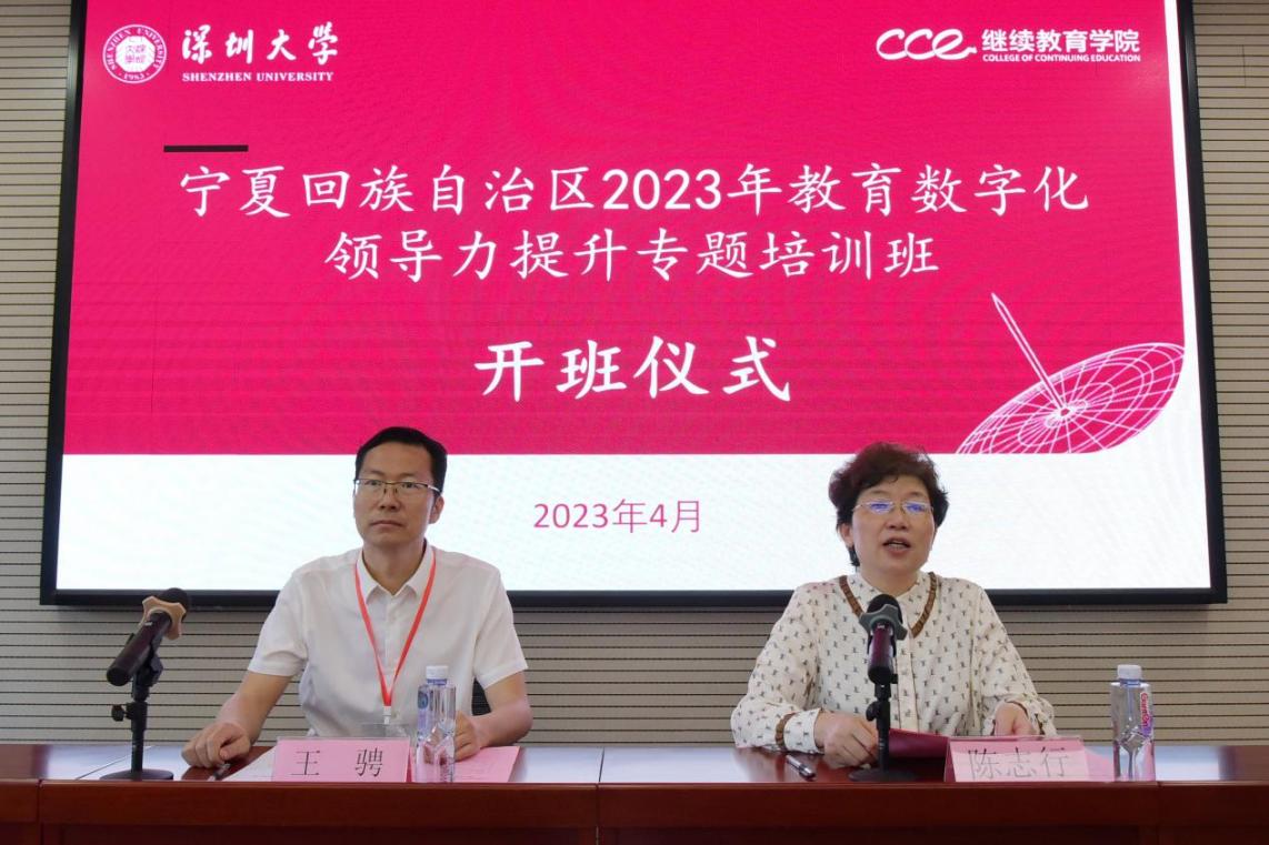 4月17日上午,培训班举行开班仪式,宁夏教育信息化管理中心主任王骋和深圳大学继续教育学院党总支书记陈志行出席开班仪式。