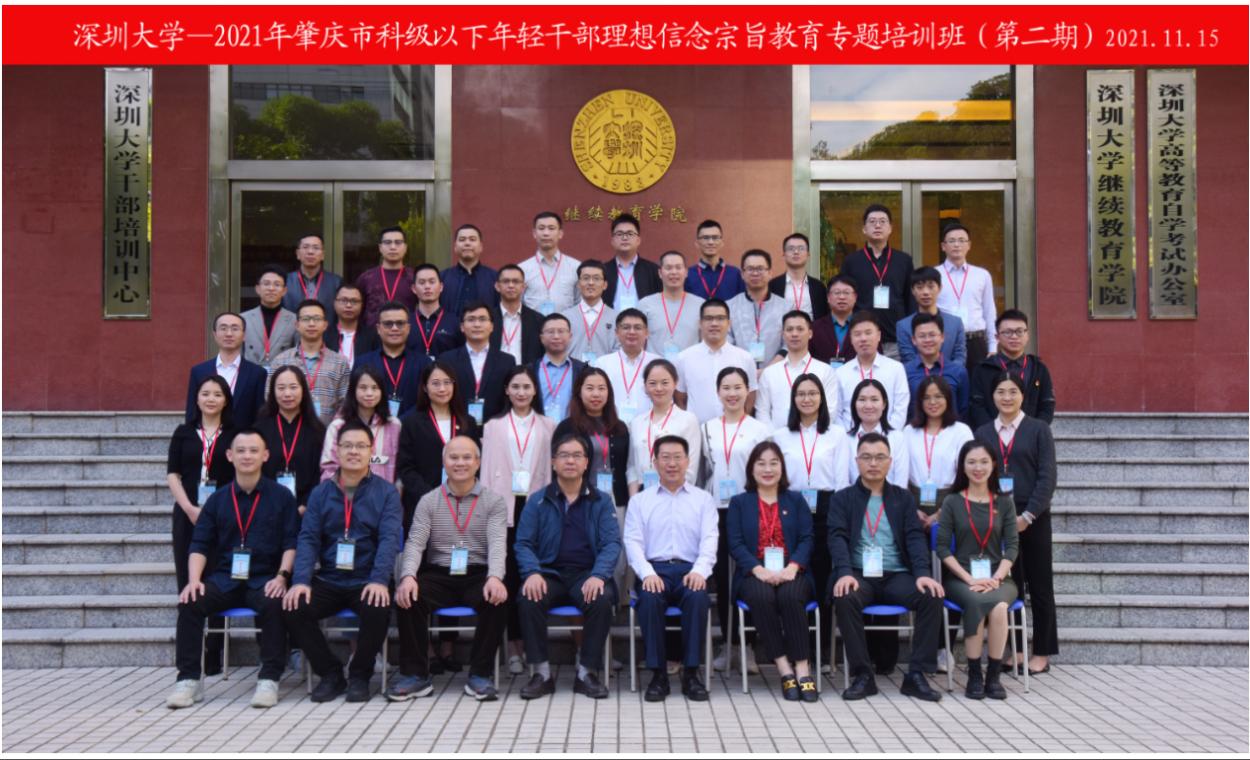 11月15日至11月21日,2021年肇庆市科级以下年轻干部理想信念宗旨教育专题培训班(第二期)在深圳大学罗湖校区成功举办,来自肇庆市的共50名学员参加此次培训。