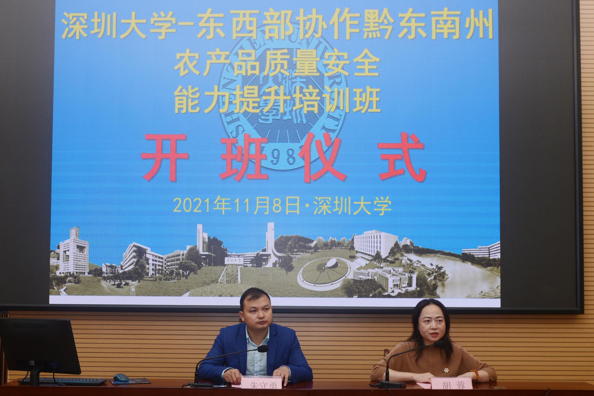 11月8日上午,培训班举行开班仪式,黔东南州农业发展中心主任朱守勇、深圳大学继续教育学院副院长胡蓉出席开班仪式。胡蓉代表深圳大学致欢迎辞,对各位学员的到来表示热烈欢迎,并介绍了深圳大学的建校历程、办学特色、人才培养、知名校友等情况,并预祝本次培训圆满成功。朱守勇作开班动员讲话,希望学员们珍惜此次培训机会,严守纪律,充分学习和借鉴深圳特区就业创业服务先进模式和工作经验,提升业务水平。