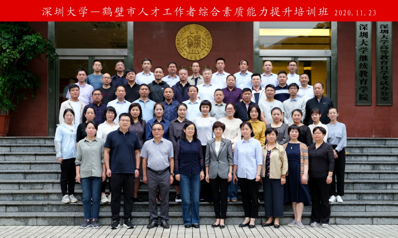 11月23日至27日,河南省鹤壁市人才工作者综合素质能力提升培训班在深圳大学继续教育学院举办,55位学员参加培训并顺利结业。鹤壁市委组织部副部长、市公务员局局长赵秀宇,深圳大学继续教育学院党总支书记王瑜出席开班仪式。