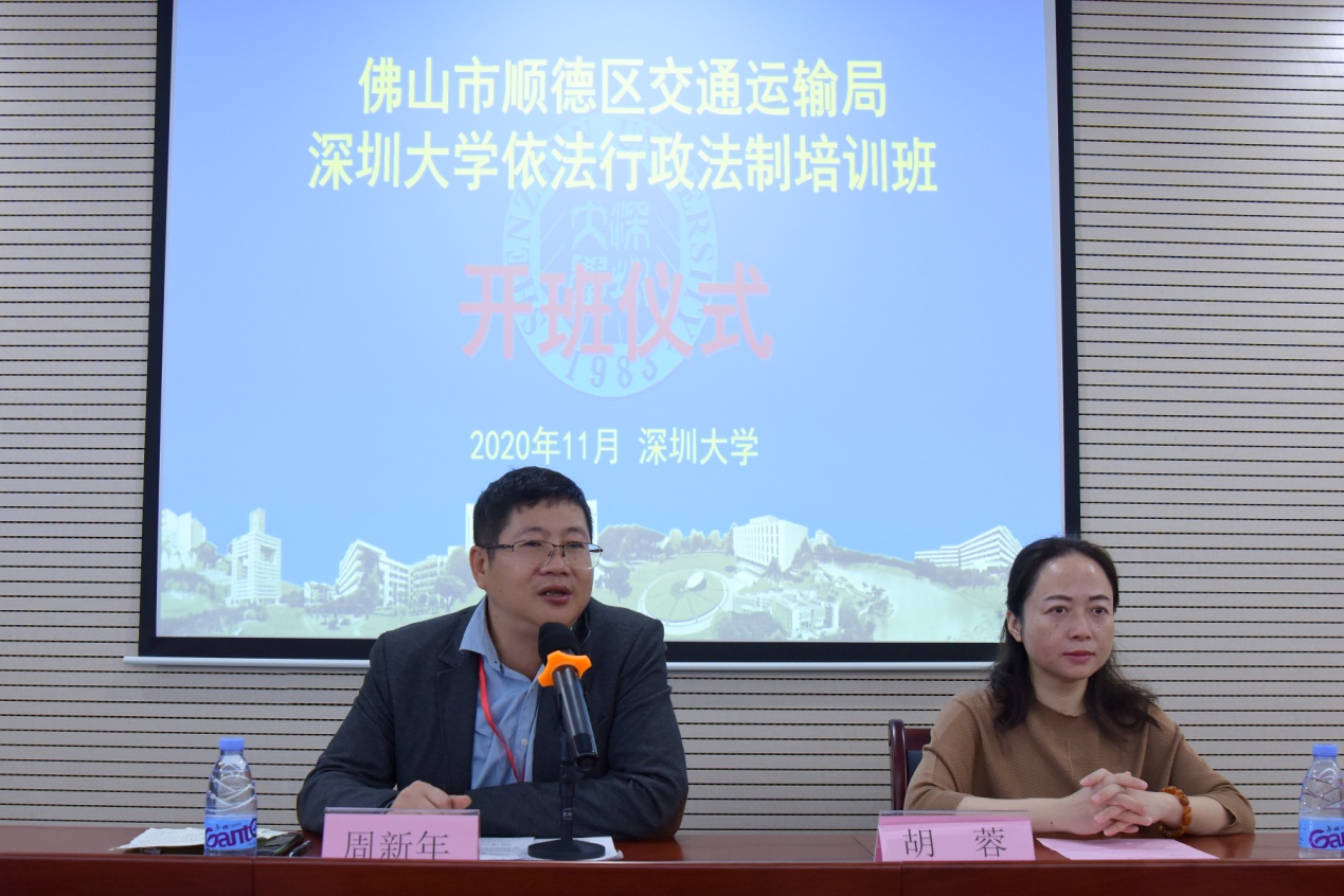 11月10日,佛山市顺德区交通运输局深圳大学依法行政法制培训班在深圳大学继续教育学院开班,区交通运输局副局长周新年做开班动员讲话,深圳大学继续教育学院副院长胡蓉致欢迎词,43位学员参加培训。