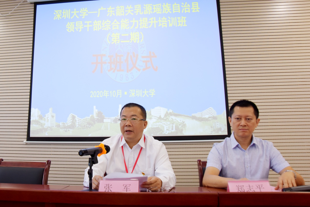 10月26日,广东韶关乳源瑶族自治县领导干部综合能力提升培训班在深圳大学继续教育学院开班,县委副书记张军做开班动员讲话,深圳大学继续教育学院副院长郑志平致欢迎词,41名学员参加培训。