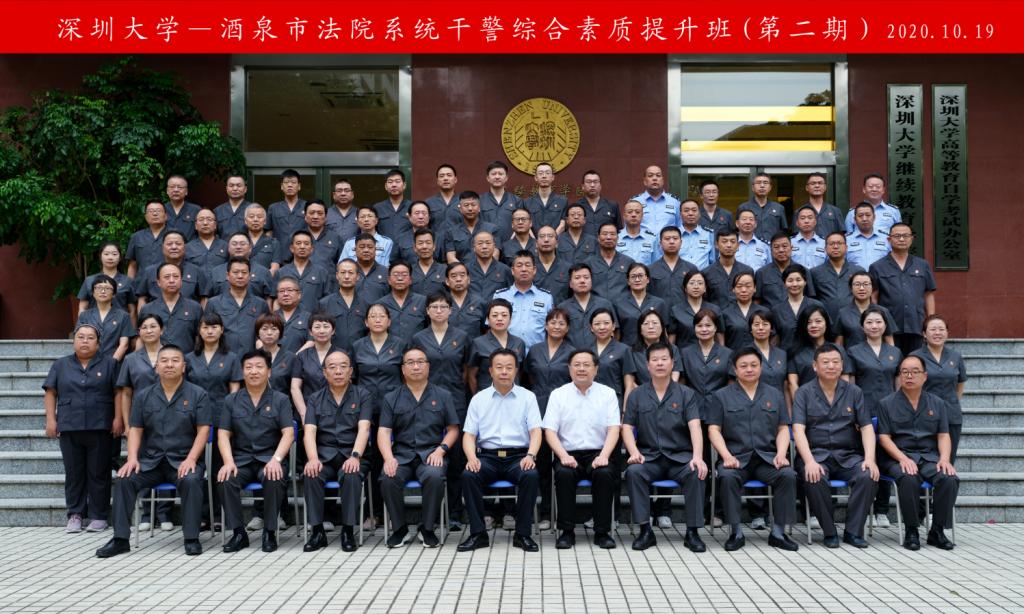 10月19日,酒泉市法院系统干警综合素质提升班(二期)在深圳大学继续教育学院开班,酒泉市中级人民法院党组书记、院长杨耀明及酒泉市法院系统约90名干警参加培训,深圳大学副校长徐晨参加开班合影活动。