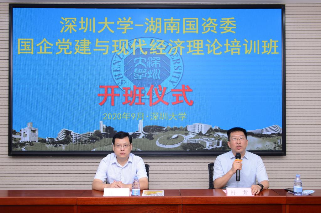 9月14日,湖南省国资委国企党建与现代经济理论培训班在深圳大学继续教育学院开班,湖南国资委企业领导人员管理处处长唐志国、深圳大学继续教育学院院长杜龙出席开班仪式,来自湖南省国资委以及相关企业的46名中层干部参加此次培训。
