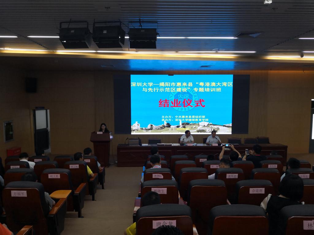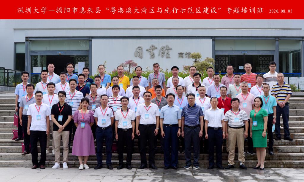 8月3日至7日,由广东省委组织部、揭阳市惠来县委组织部主办,深圳大学继续教育学院承办的“粤港澳大湾区与中国特色社会主义先行示范区建设”专题培训班在深圳大学粤海校区成功举办,揭阳市惠来县直各有关单位及镇(区)负责人共50人参加培训并顺利结业。