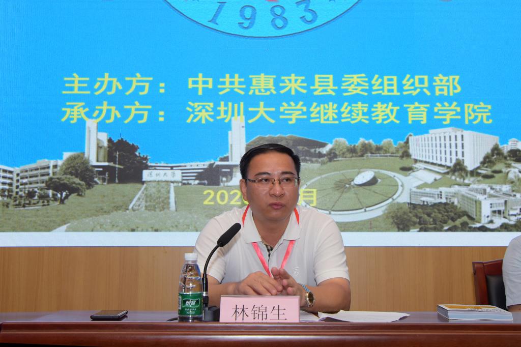 8月3日,培训班开班。深圳大学继续教育学院院长杜龙致欢迎词,惠来县委常委、组织部部长、县委党校校长林锦生作开班动员讲话。
