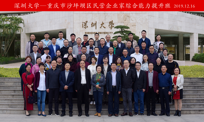 12月16日,重庆市沙坪坝区民营企业家综合能力提升班在深圳大学粤海校区开班,重庆市沙坪坝区委常委、统战部部长蔡道静出席开班仪式并作动员讲话,深圳大学继续教育学院院长杜龙致欢迎词。
