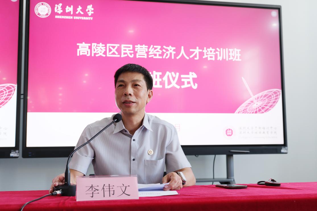 李伟文在致辞中对学员的到来表示热烈欢迎,并介绍了深圳大学的建校历程、办学特色、人才培养、科学研究等情况。