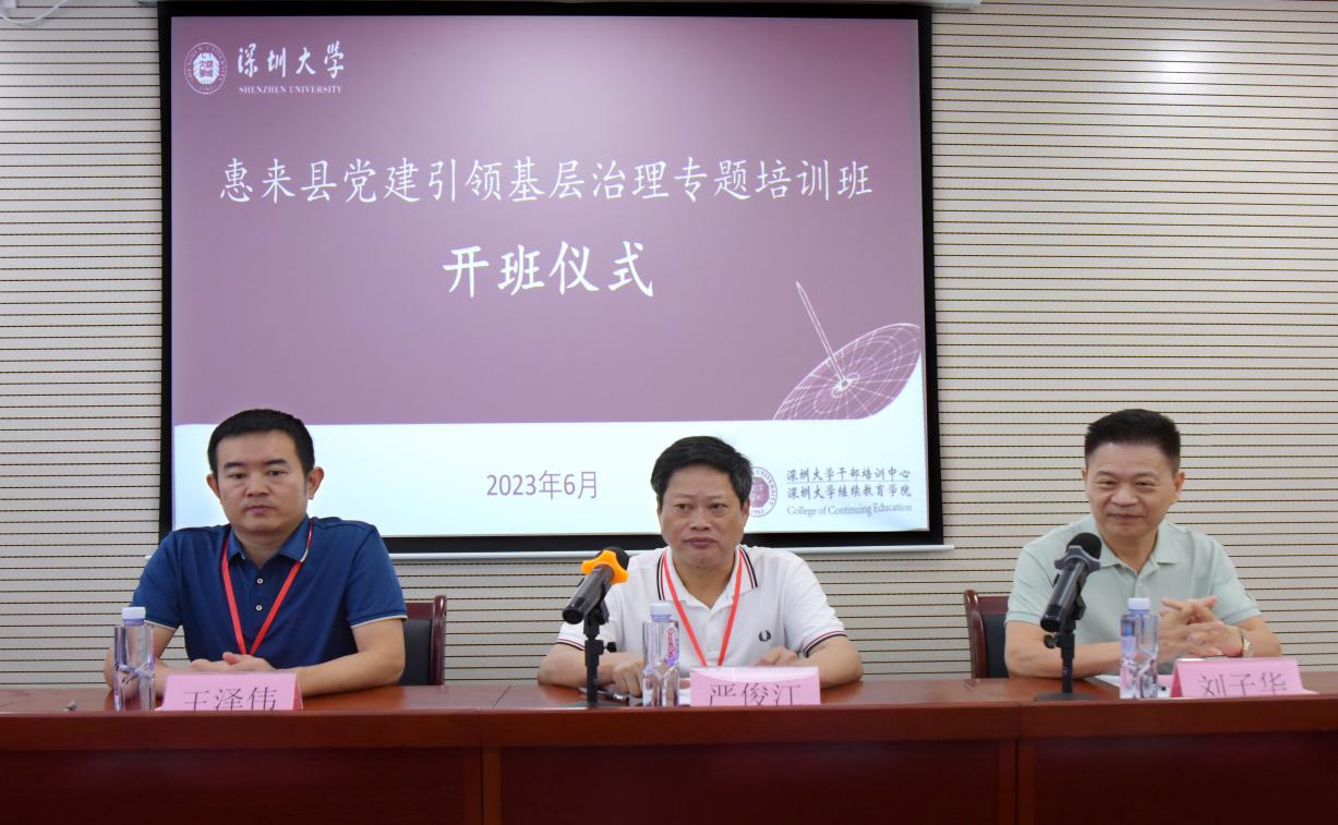6月26日上午,培训班举行开班仪式,惠来县委副书记严俊江,惠来县委常委、组织部部长、党校校长王泽伟,深圳大学继续教育学院副院长刘子华出席开班仪式。