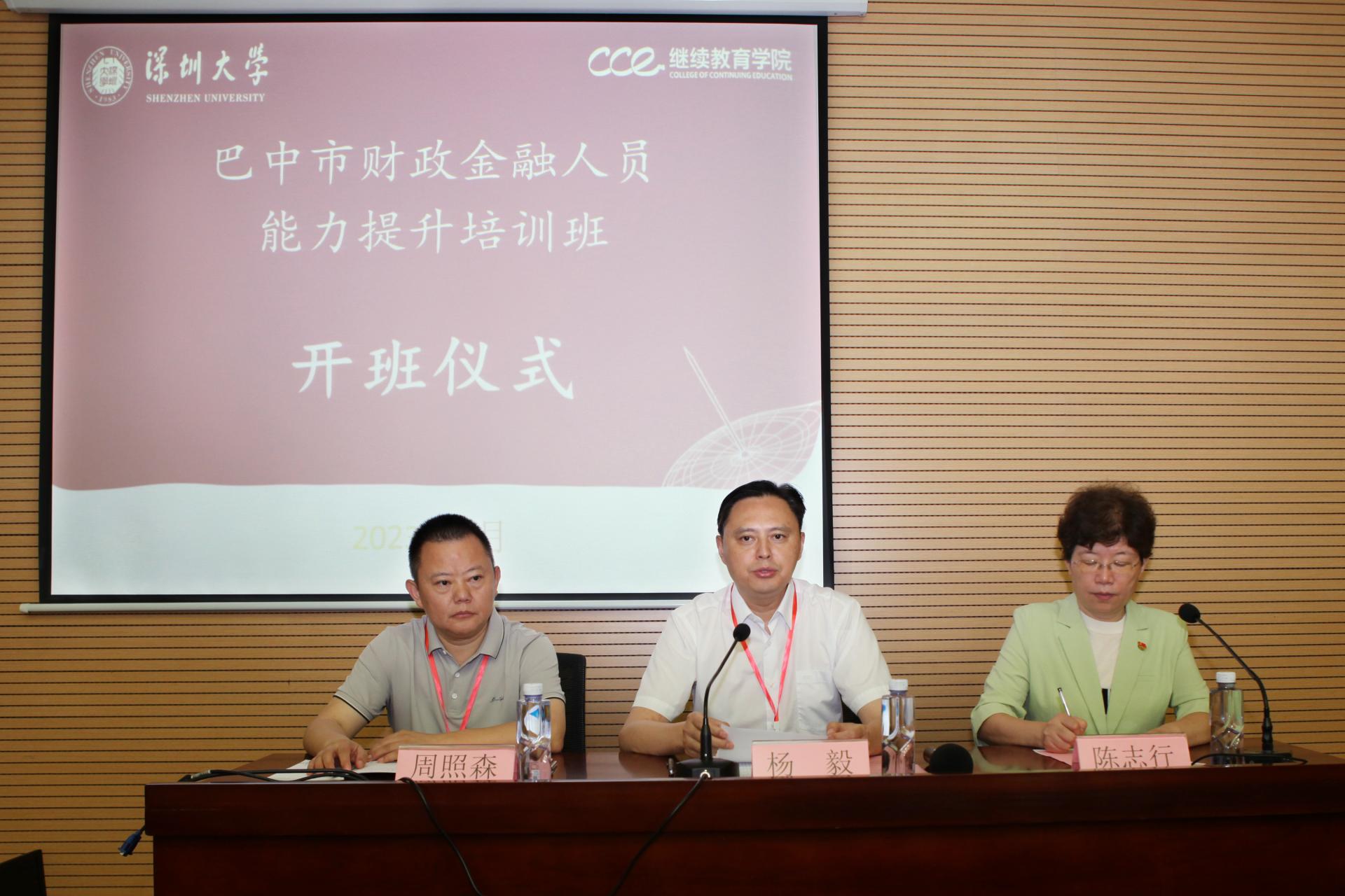 6月26日上午,培训班举行开班仪式,巴中市政府副秘书长、办公室主任杨毅,巴中市金融工作局党组书记、局长周照森,深圳大学继续教育学院党总支书记陈志行出席开班仪式。