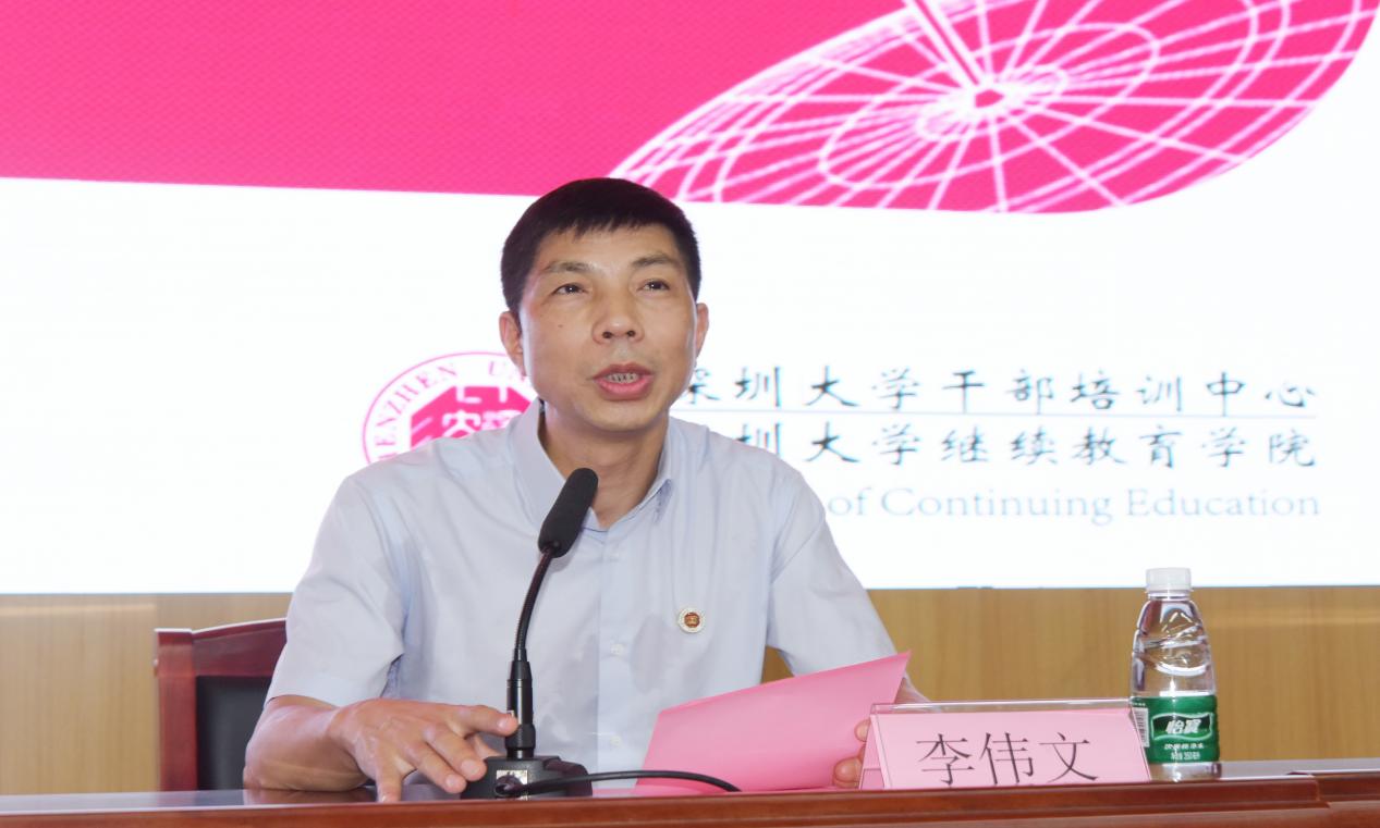 李伟文代表深圳大学致欢迎辞,介绍了深圳大学的建校历程、办学特色、学科建设、人才培养、综合实力排名和知名校友等情况,并预祝本次培训班圆满成功。