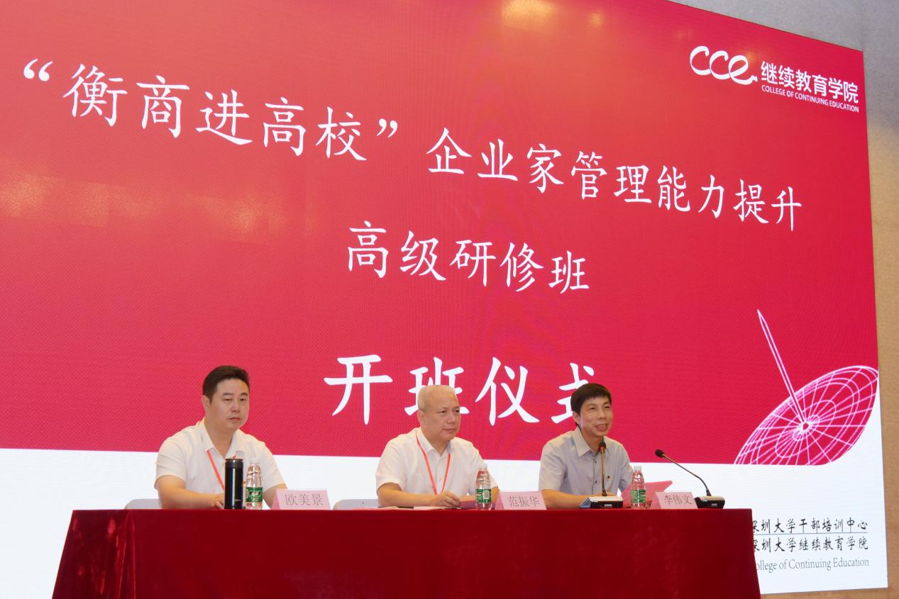 9月19日上午,培训班举行开班仪式,衡阳市工商联主席、衡阳市总商会会长范振华,衡阳市工商联党组成员、副主席、衡阳市总商会副会长欧美景,深圳大学继续教育学院院长李伟文出席开班仪式。
