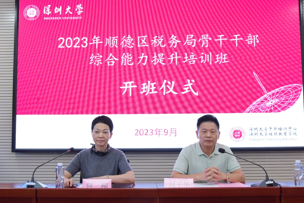 9月24日下午,培训班举行开班仪式,佛山市顺德区税务局副局长何柳,深圳大学继续教育学院副院长刘子华出席开班仪式。