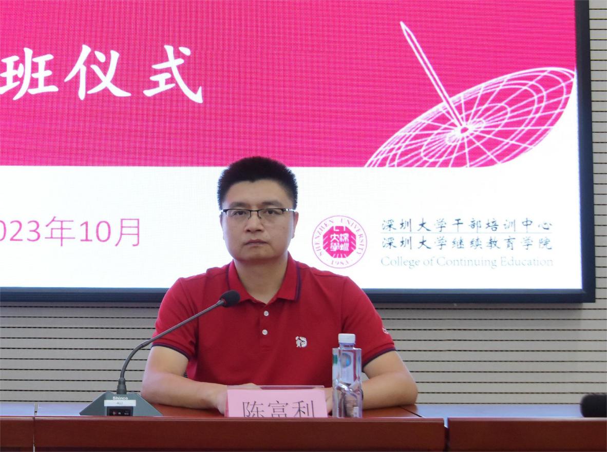 陈富利代表深圳大学致欢迎辞,对各位学员的到来表示热烈欢迎,介绍了深圳大学的建校历程、办学特色、学科建设、人才培养、综合实力排名、知名校友等情况,并预祝本次培训圆满成功。