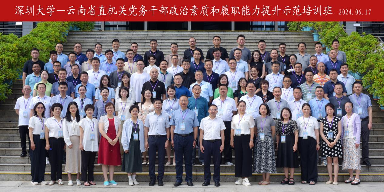 6月17日至6月21日,云南省直机关党务干部政治素质和履职能力提升示范培训班在深圳大学粤海校区举办,共计90位学员参加培训。云南省委办公厅督查专员施红斌,云南省委省直机关工委组织部部长李宏斌,深圳大学继续教育学院院长李伟文出席开班式。