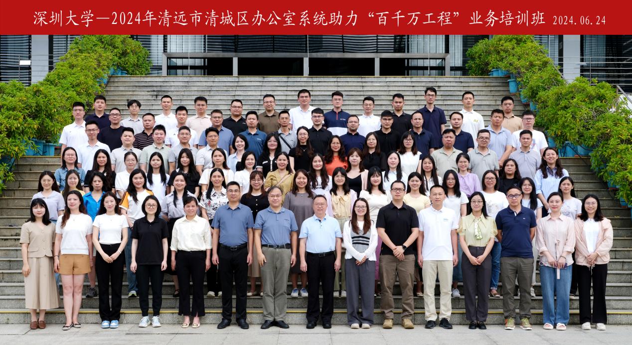 6月24日至6月28日,2024年清远市清城区办公室系统助力“百千万工程”业务培训班在深圳大学粤海校区举办,共计110位学员参加培训。清远市清城区区委常委、区委办公室主任、区委政法委书记、区直机关工委书记钟伟权,深圳大学继续教育学院副院长王楠出席开班式。