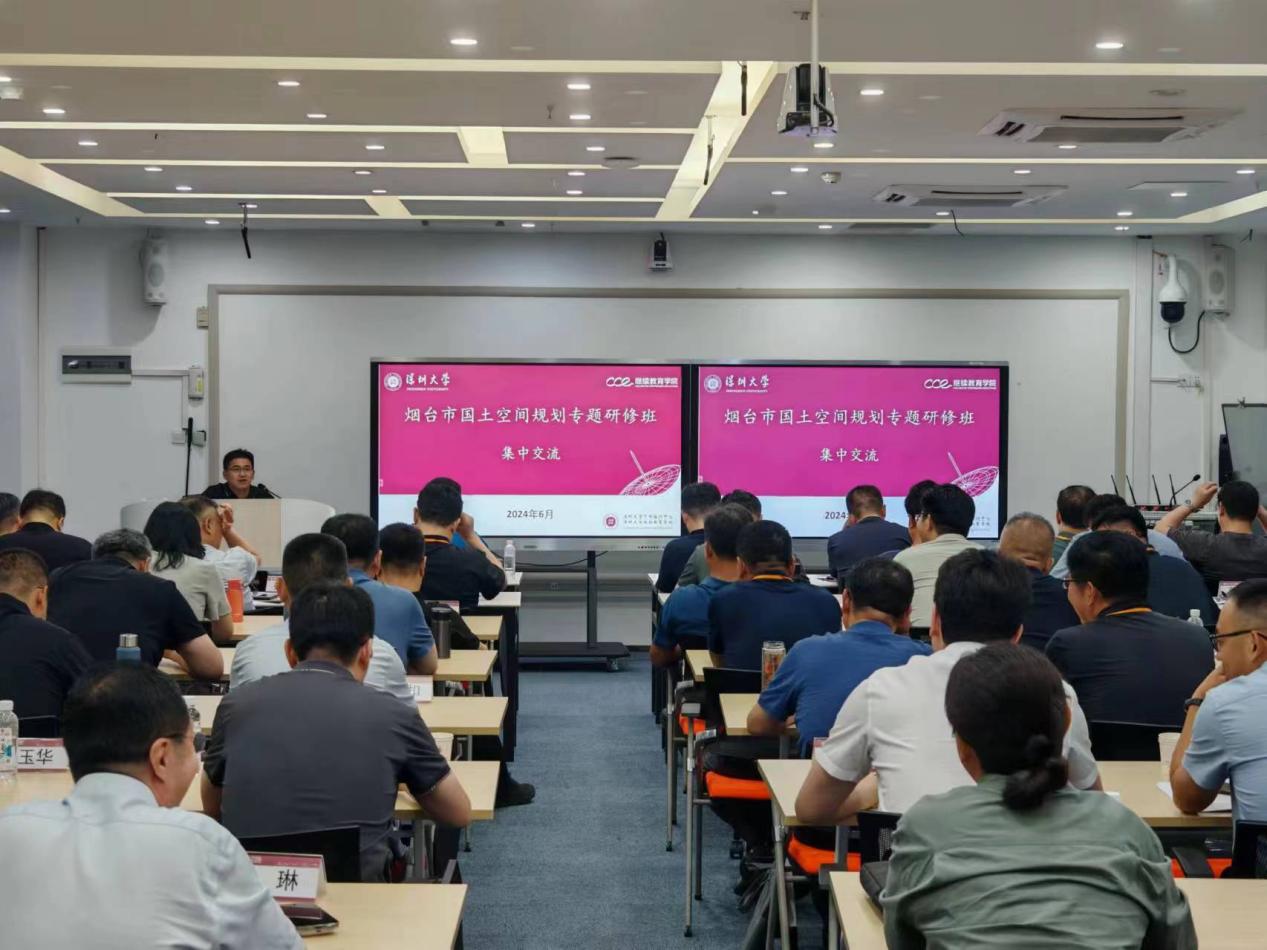 6月24日至6月28日,烟台市国土空间规划专题研修班在深圳大学粤海校区举办,共计52位学员参加培训。烟台市自然资源和规划局党组书记、局长刘增贵,烟台市委组织部党员教育中心综合科科长范亚林,深圳大学继续教育学院院长李伟文出席开班式。