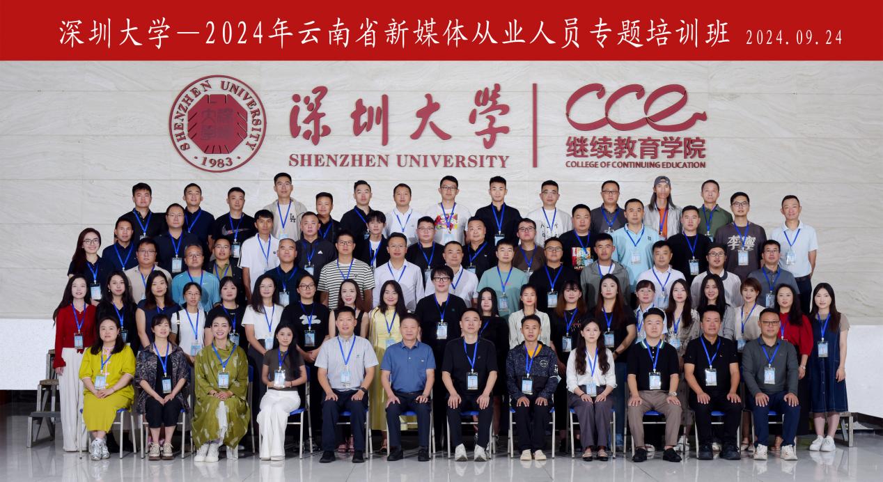 9月24日至9月26日,2024年云南省新媒体从业人员专题培训班在深圳大学继续教育学院举办,共计72位学员参加培训。中共云南省委统战部六处副处长邱仕林,深圳大学继续教育学院副院长刘子华出席开班合影。
