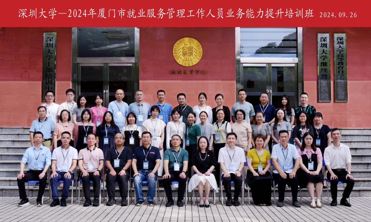 9月26日至9月30日,2024年厦门市就业服务管理工作人员业务能力提升培训班在深圳大学继续教育学院举办,共计40位学员参加培训。厦门市思明区就业中心副主任金章松,深圳大学继续教育学院副院长胡蓉出席开班式。