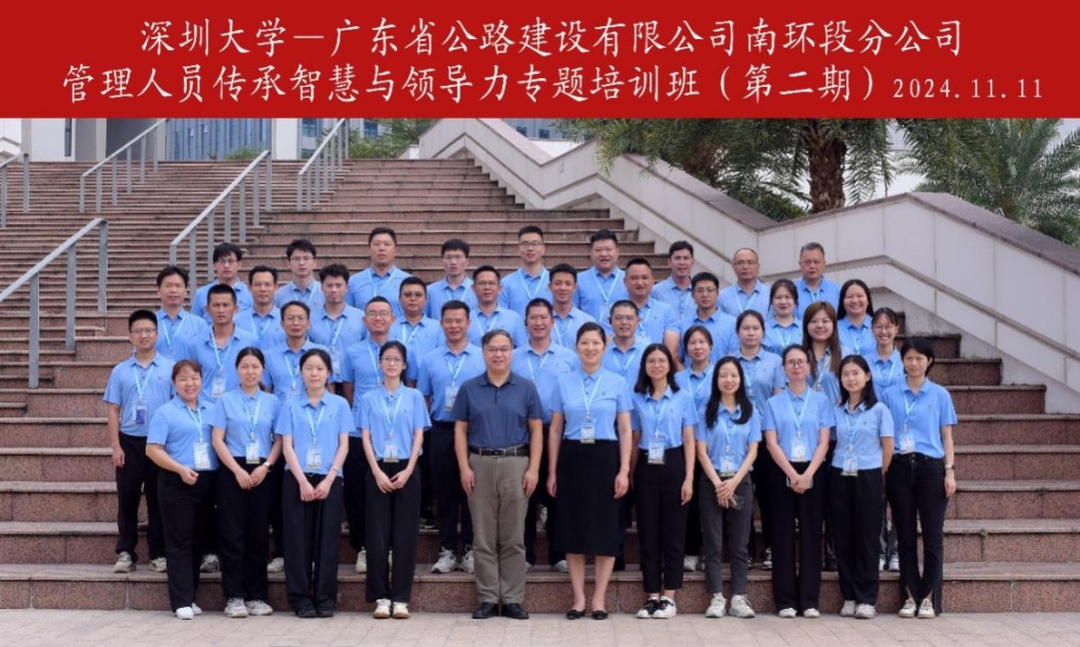 11月11日至11月13日,广东省公路建设有限公司南环段分公司管理人员传承智慧与领导力专题培训班(第二期)在深圳大学粤海校区举办,共计42位学员参加培训。广东省公路建设有限公司南环段分公司党群监审(人力)部副经理龙锦钰,深圳大学继续教育学院副院长王楠出席开班式。