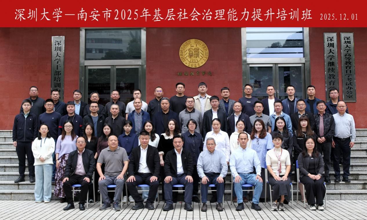 12月1日至5日,泉州南安市2025年基层社会治理能力提升培训班在深圳大学举办,共计52位学员参加培训。南安市委常委、政法委书记黄队强,深圳大学继续教育学院党总支书记张革华出席开班式并讲话。