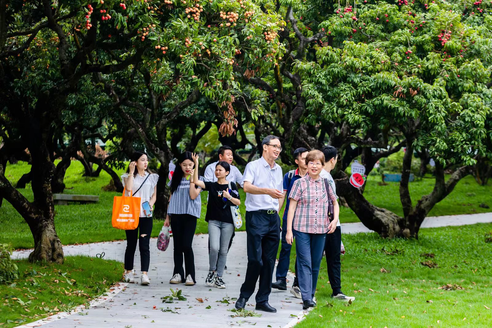 六月红荔挂枝头,荔园师生庆丰收!6月15日下午,继续教育学院组织学院10多位校友代表、20多名在校生代表、教职工等50多人一起,在深圳大学粤海校区开展荔枝采摘活动,共享摘荔枝、品荔枝的喜悦,共庆深大建校40周年。