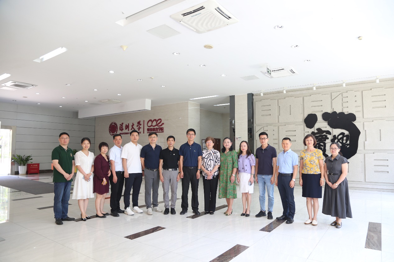 6月2日,东莞理工学院继续教育学院院长刘伟、副书记邹胜美、院长助理宁靓、陈峰一行九人来我院调研交流。深圳大学继续教育学院院长李伟文、党总支书记陈志行、副院长胡蓉、郑志平以及相关部门负责人参加调研交流。