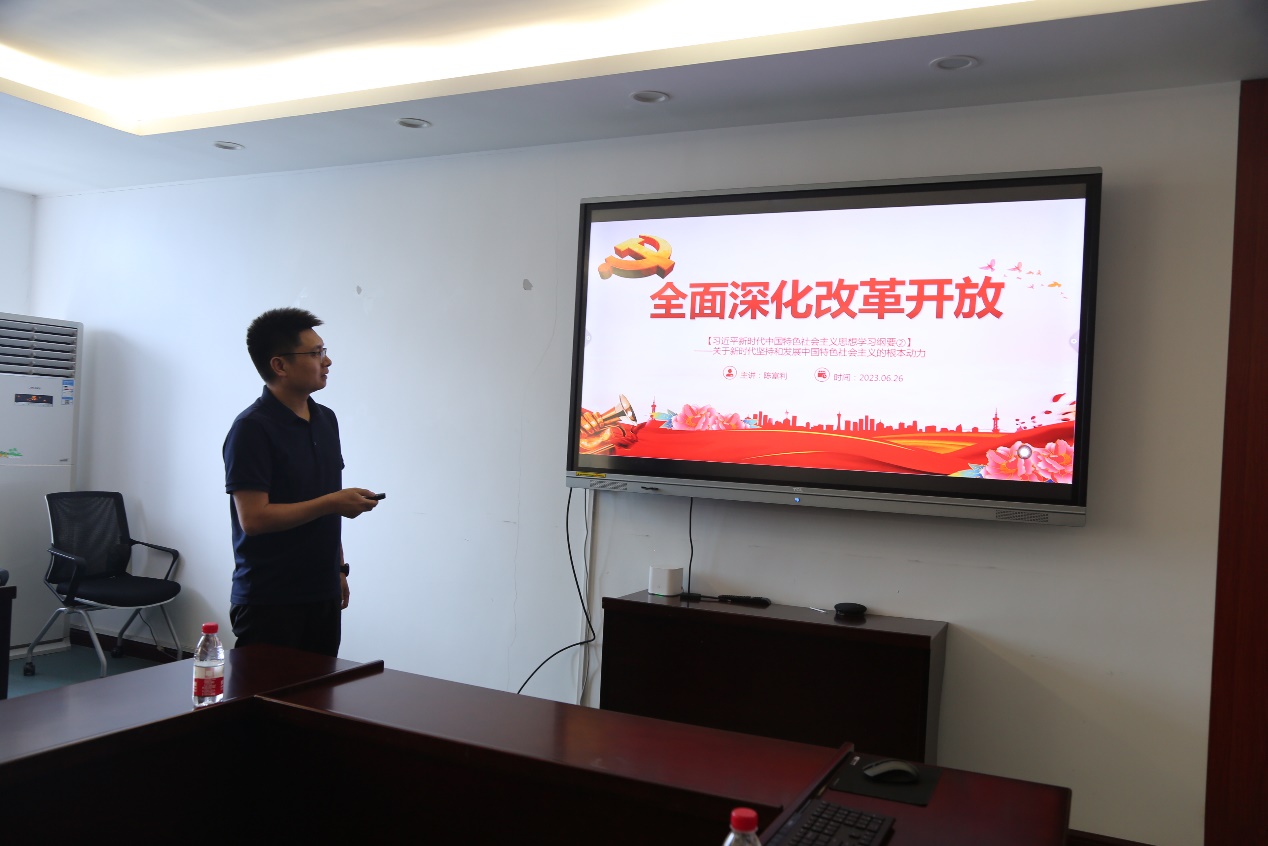 支部书记陈富利以“全面深化改革开放”为党课主题,全面讲述习近平总书记关于全面深化改革开放的重要论述,强调全面落实党的二十大部署。改革开放是一项长期的、艰巨的、繁重的事业,必须一代又一代人接力干下去。他激励党员干部必须认真总结和运用改革开放的成功经验,凝聚全院共识,协调推进院内各环节的创新改革,努力把改革开放推进向前。